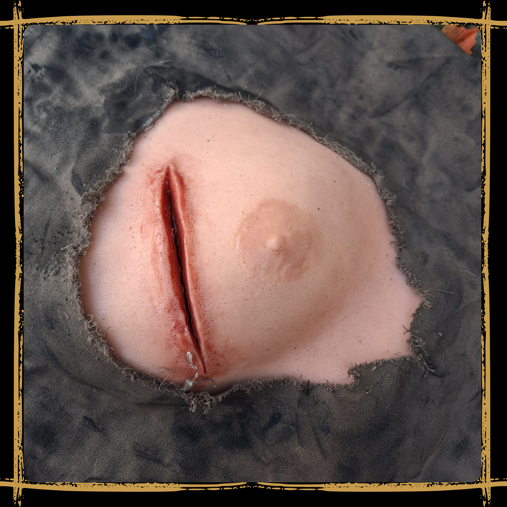 Add realistic surgery to your larp! With this silicone fake wound, you can immerse yourself and your surroundings into bloody and gritty medic and healer gameplay!