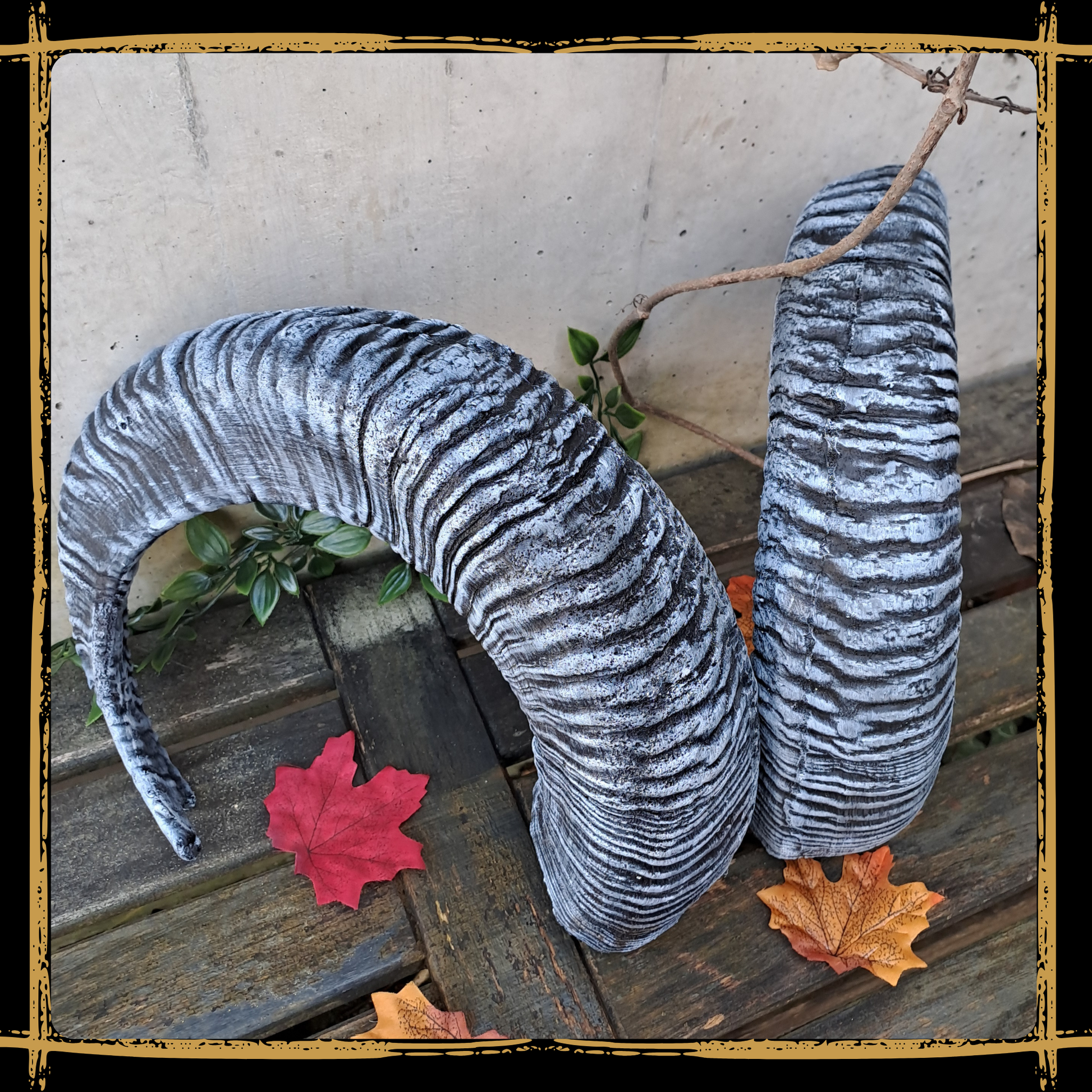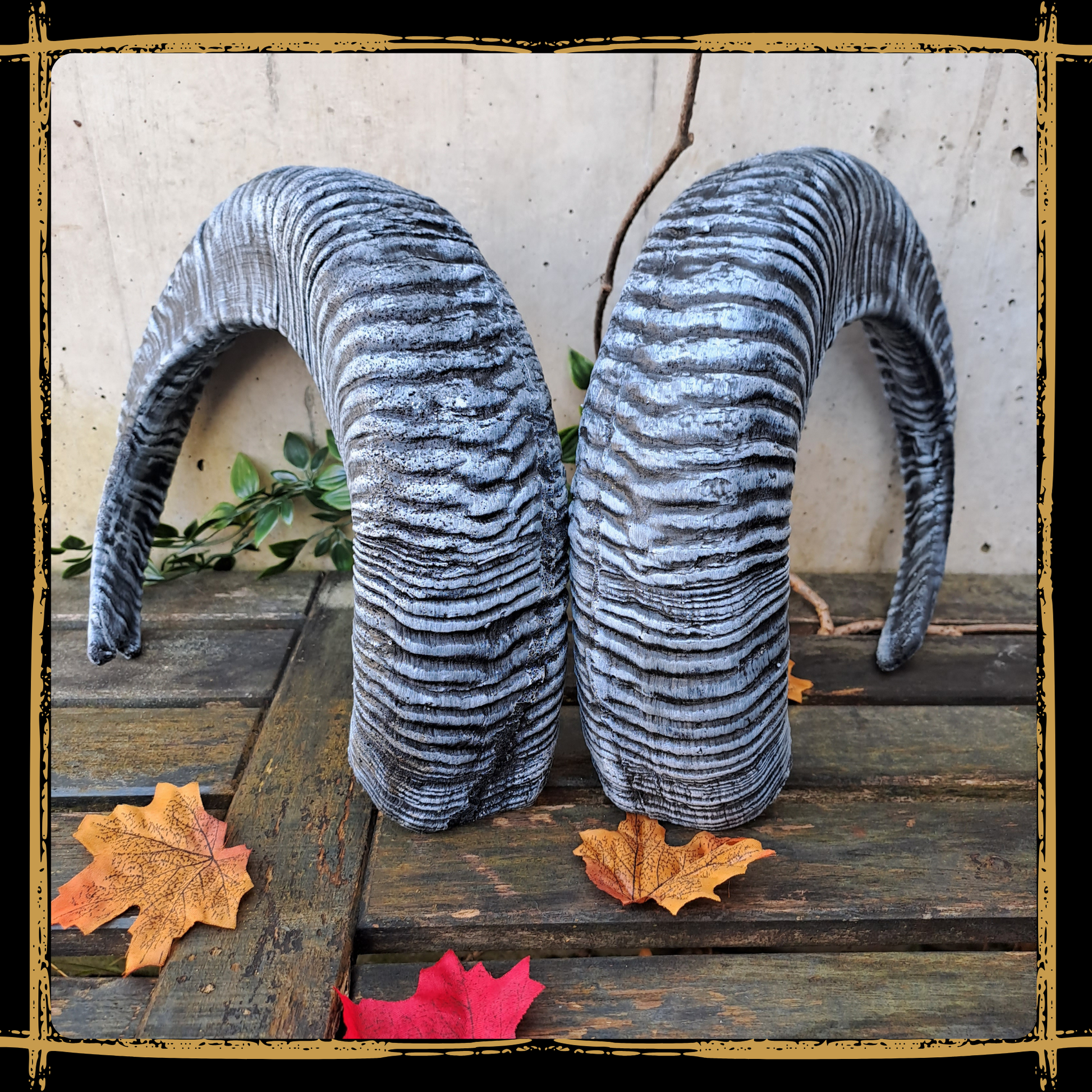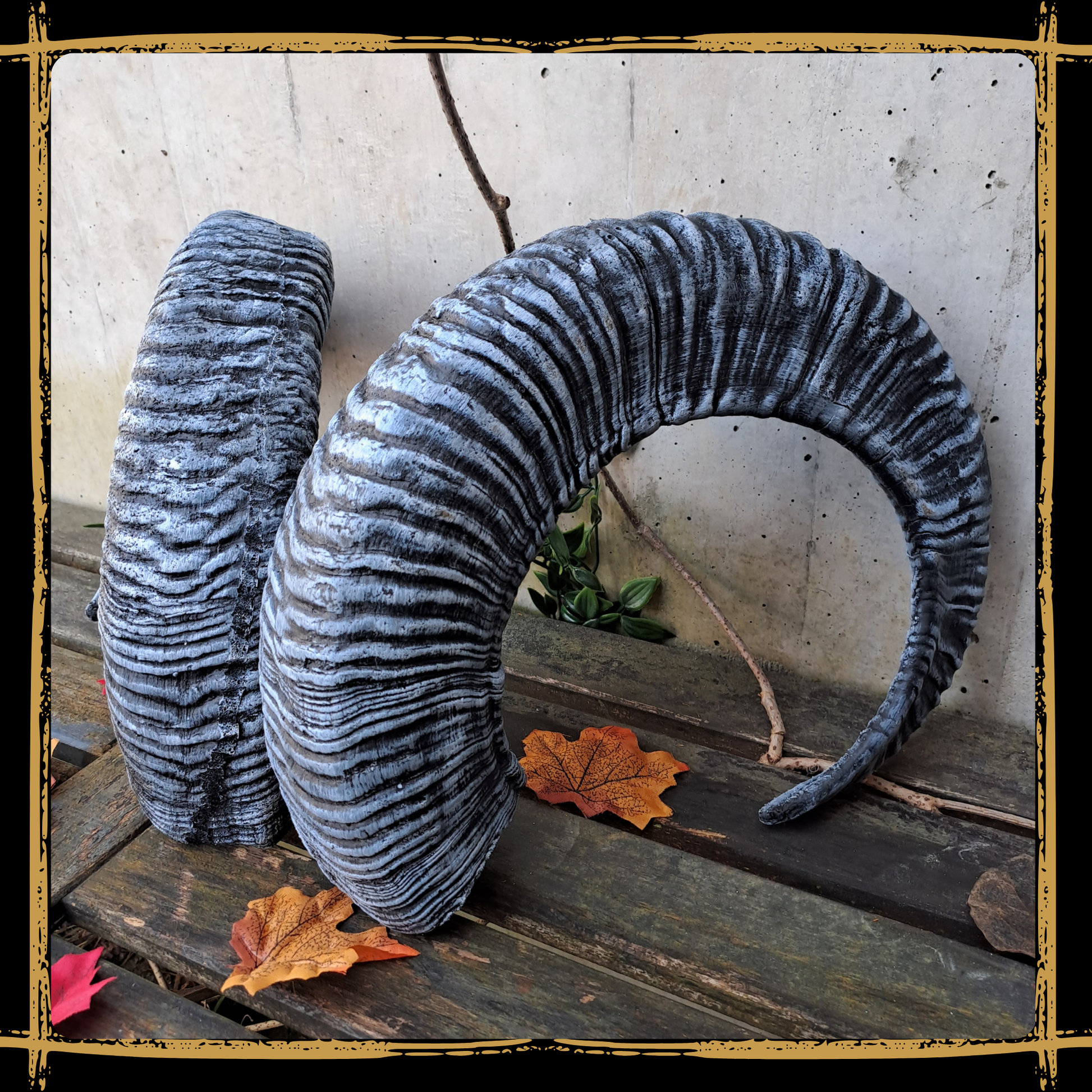 Bring your fantasy world to life with this handcrafted mouflon horns foam prop.