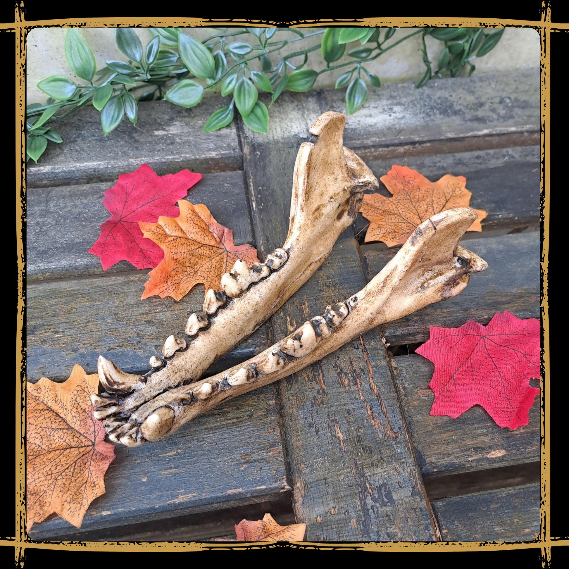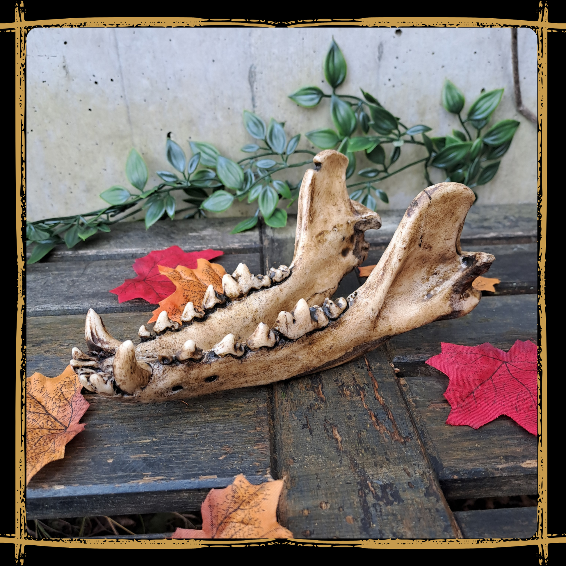 Bring your fantasy world to life with this handcrafted wolf jaw foam prop.