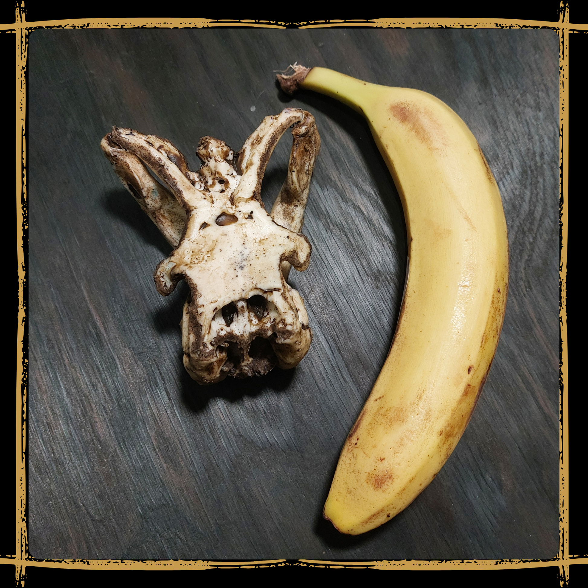 Vegan - our products are made of polyurethane foam! The model used as a base was a museum-quality replica and therefor no real bones or skulls where used in process of creating this product!